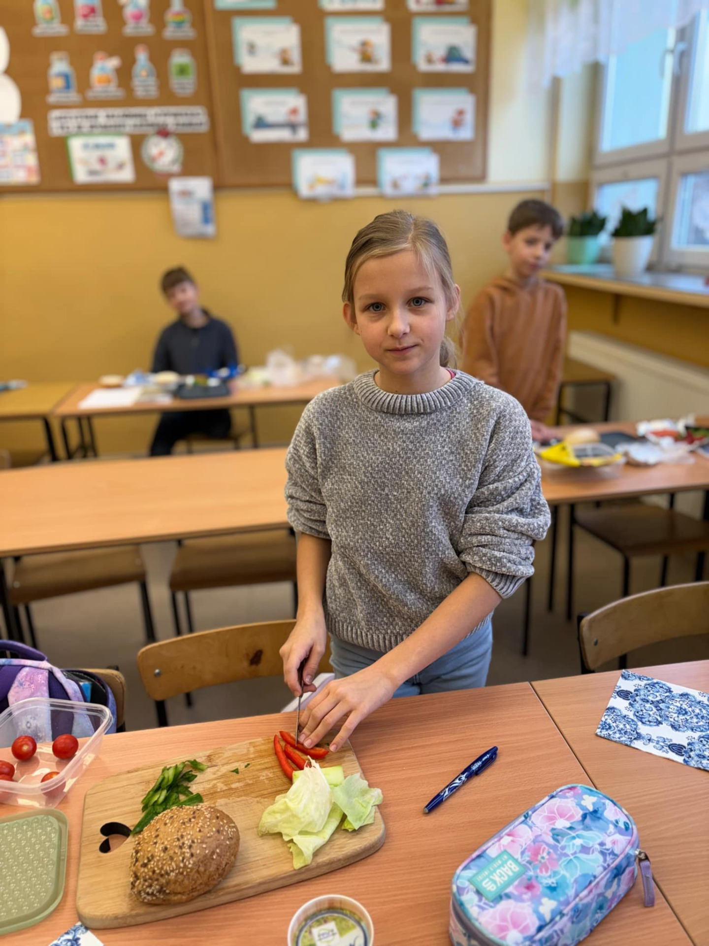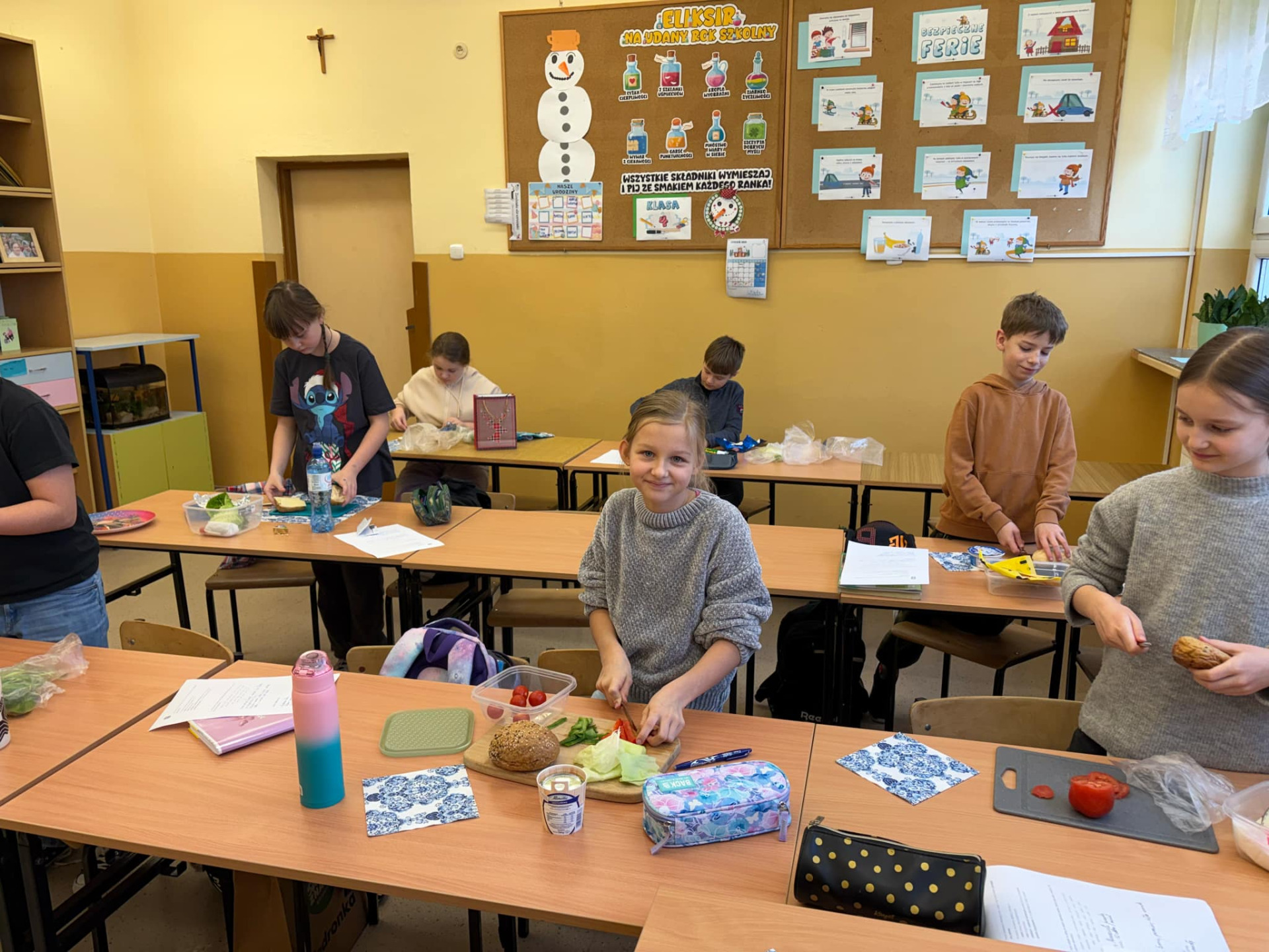 Uczniowie klasy czwartej wykonali kolejne zadanie z projektu „Polak ma essę 2”, w którym uczestniczą. Omawiając zabawne przygody Mikołajka i jego przyjaciół, skupili się na jednym z bohaterów, który za nic miał zasady zdrowego odżywiania, a jego cechą rozpoznawczą było ciągłe jedzenie i myślenie o nim. Przy okazji tworzenia zdrowej i pożywnej kanapki poznali, czym jest przepis kulinarny i jakie elementy powinien posiadać. Zwieńczeniem lekcji było zasmakowanie się w przygotowanych przekąskach.