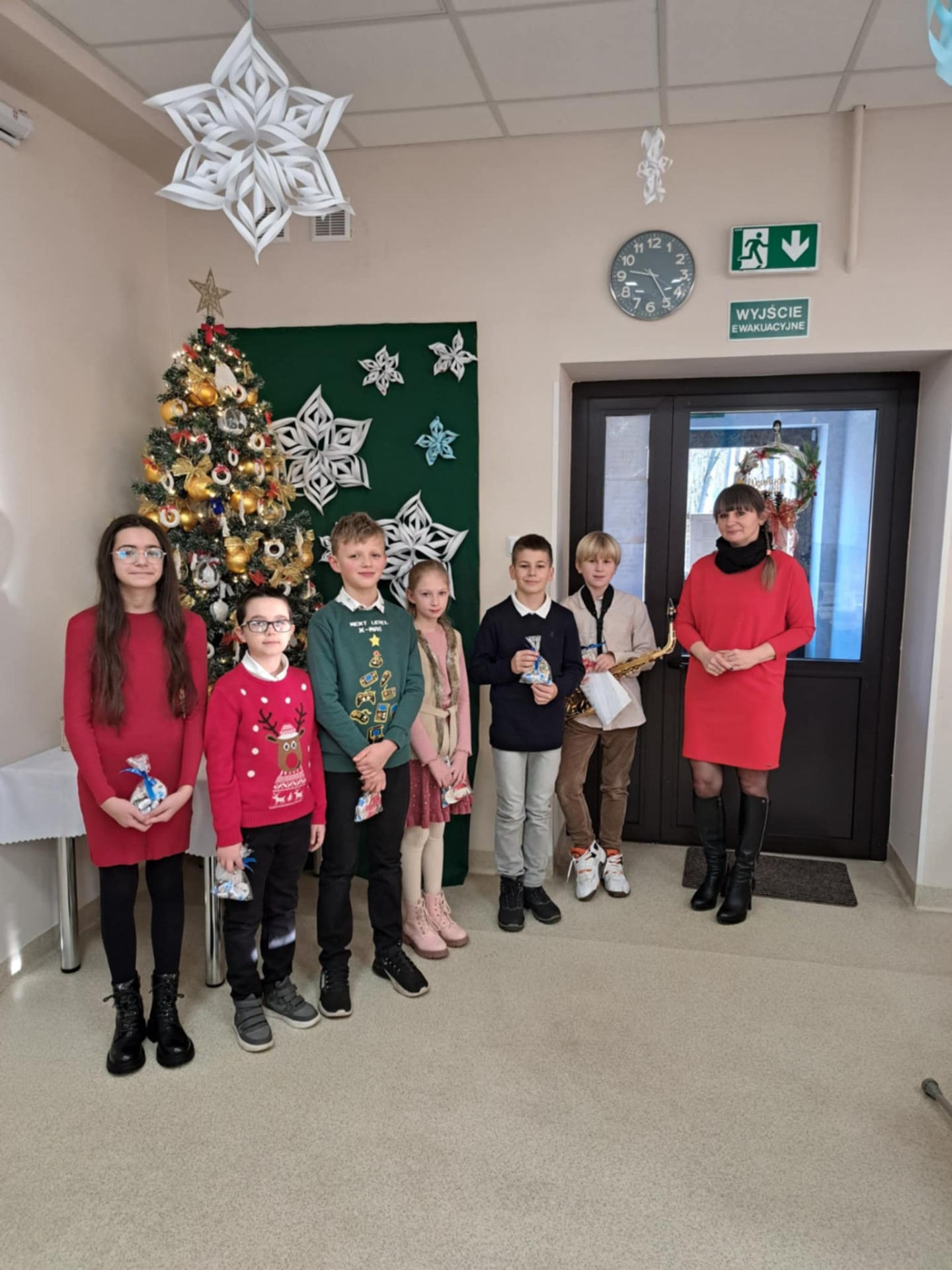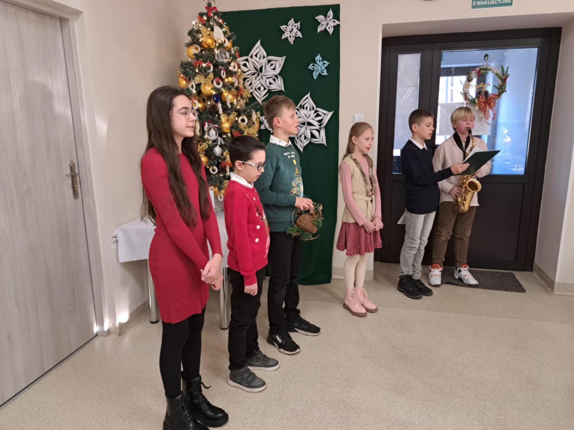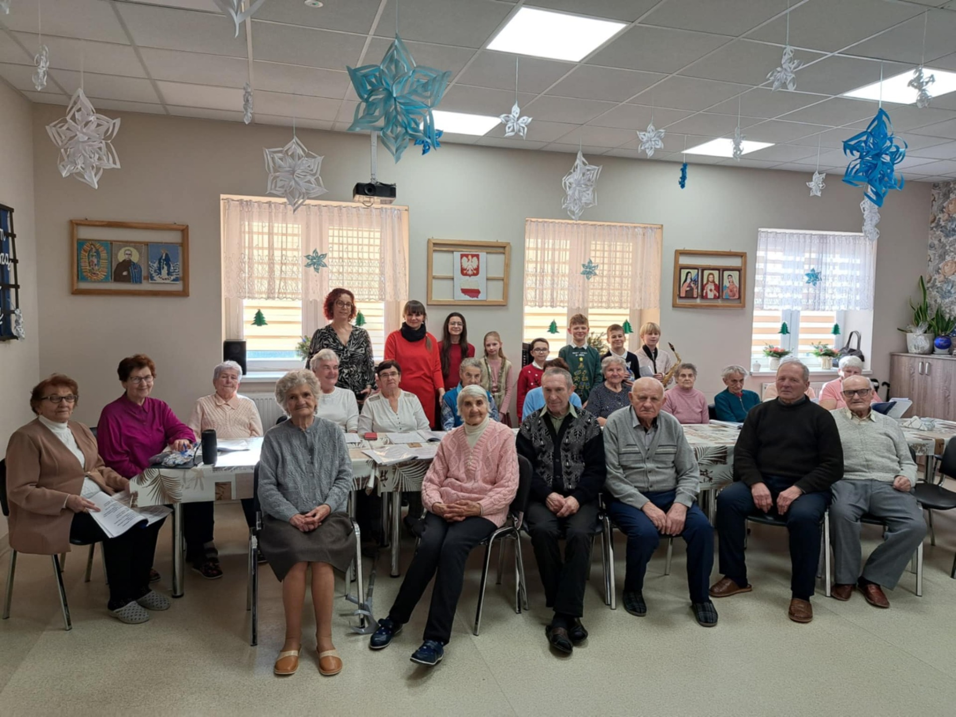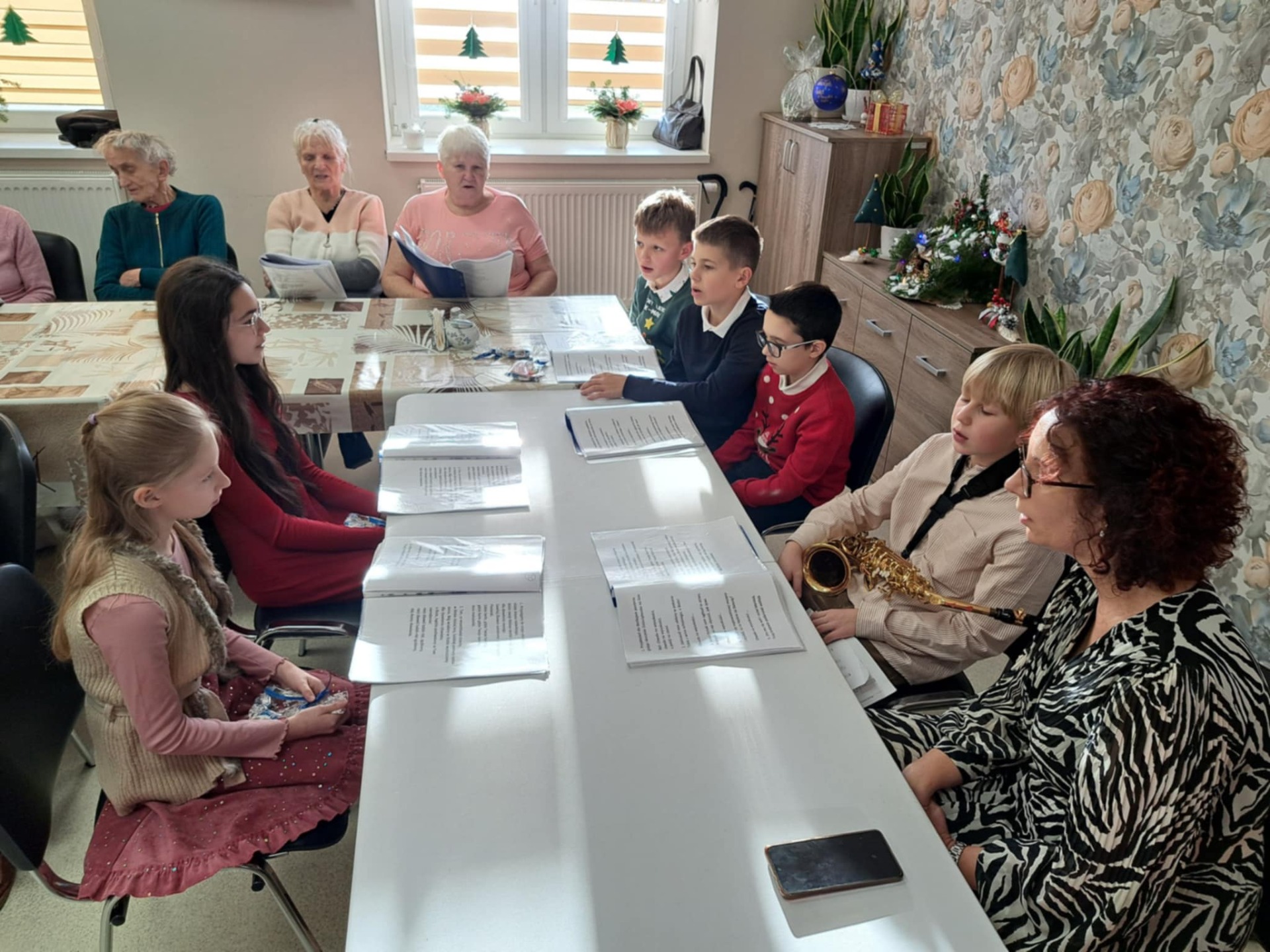 Uczniowie klasy V, pod opieką swojej wychowawczyni, pani Basi, z radością odwiedzili seniorów w Dziennym Domu Pomocy Seniorom. Spotkanie miało wyjątkowy, świąteczny charakter – dzieci przekazały życzenia z okazji Bożego Narodzenia, a wspólne kolędowanie wprowadziło wszystkich w atmosferę tych wyjątkowych dni.